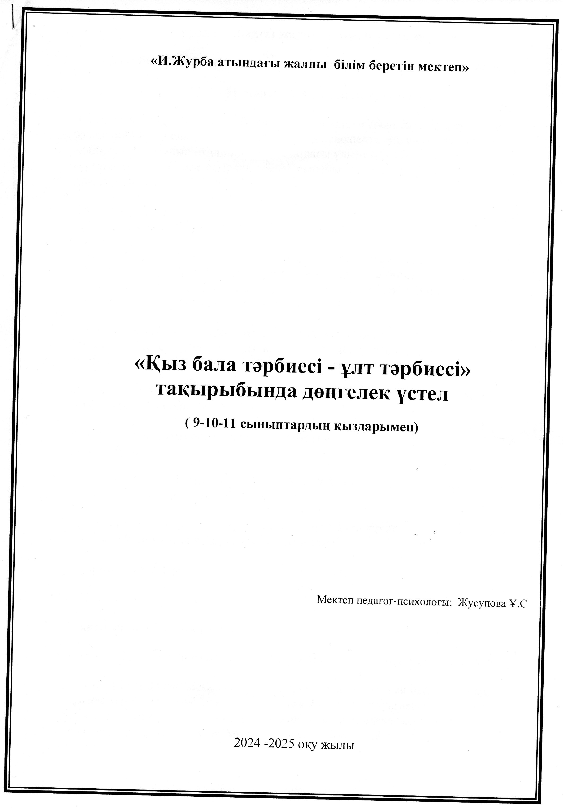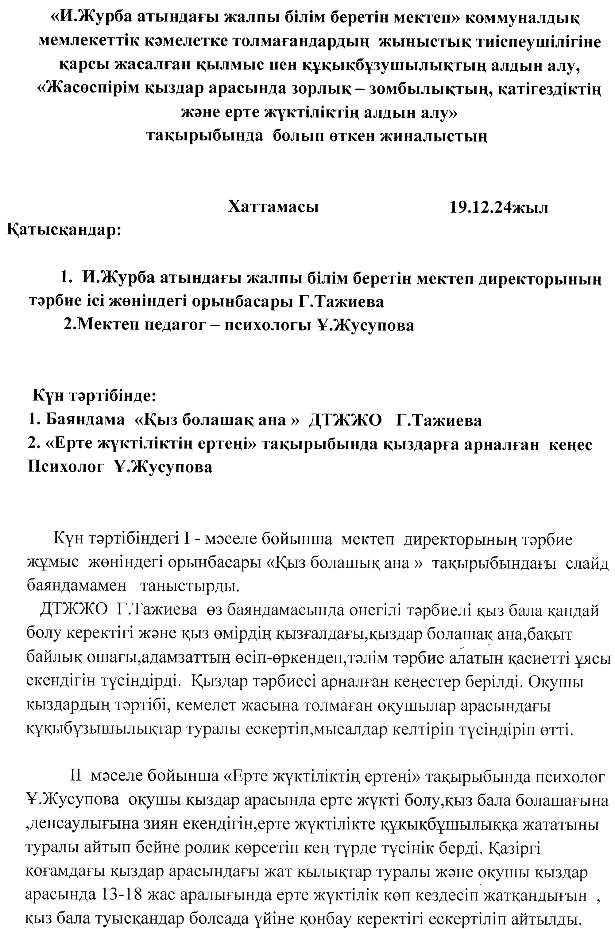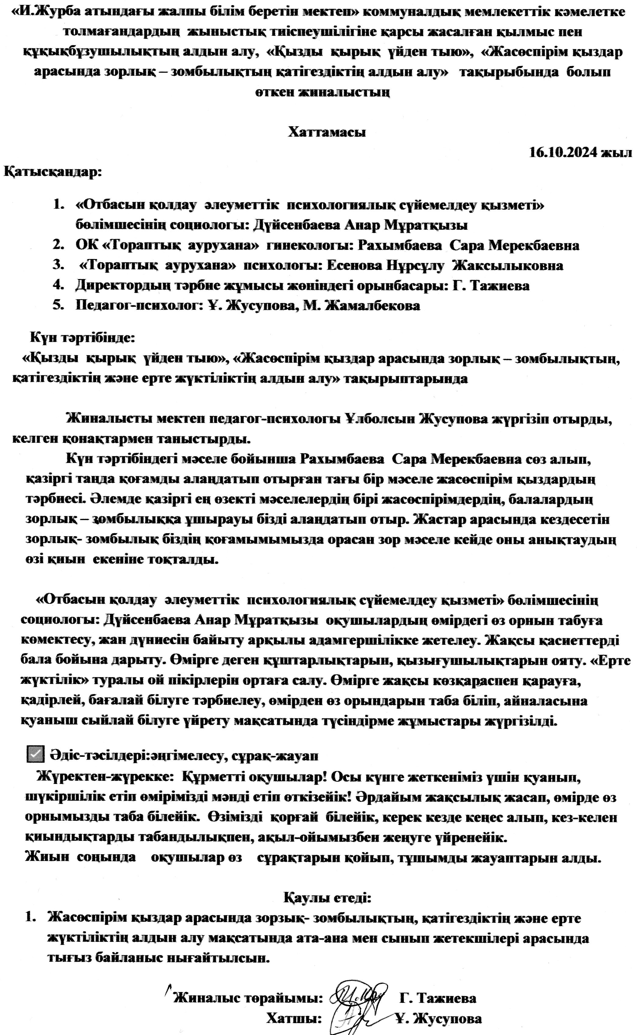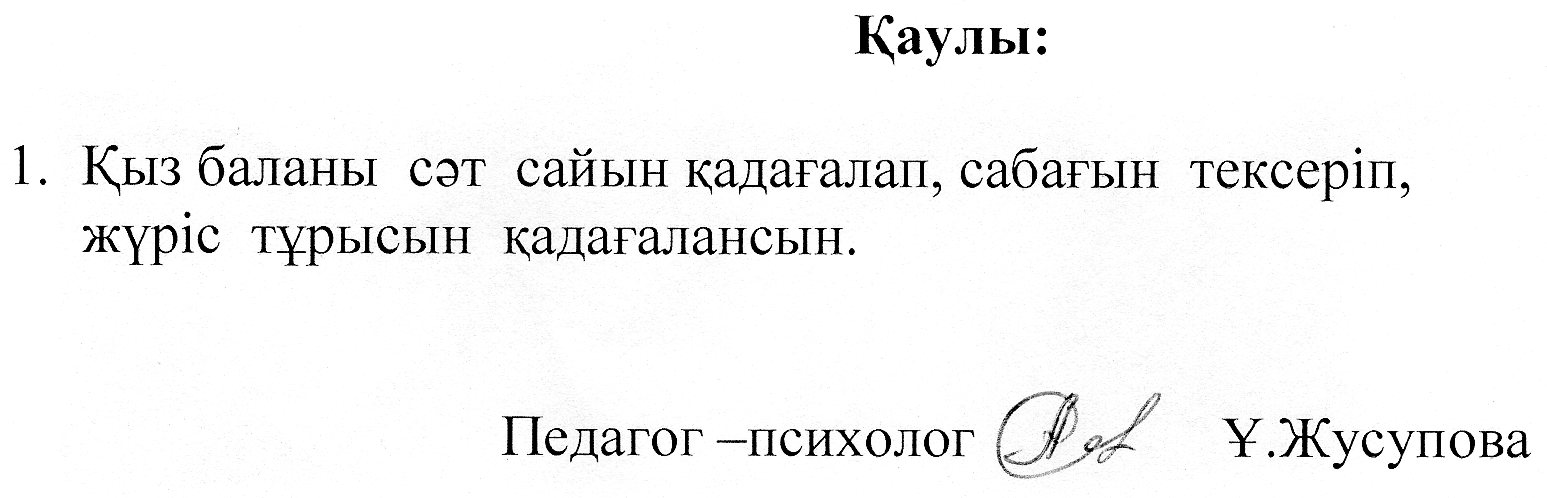 Ұл мен қыз тәрбиесі отырысының құжаттары бөлімі