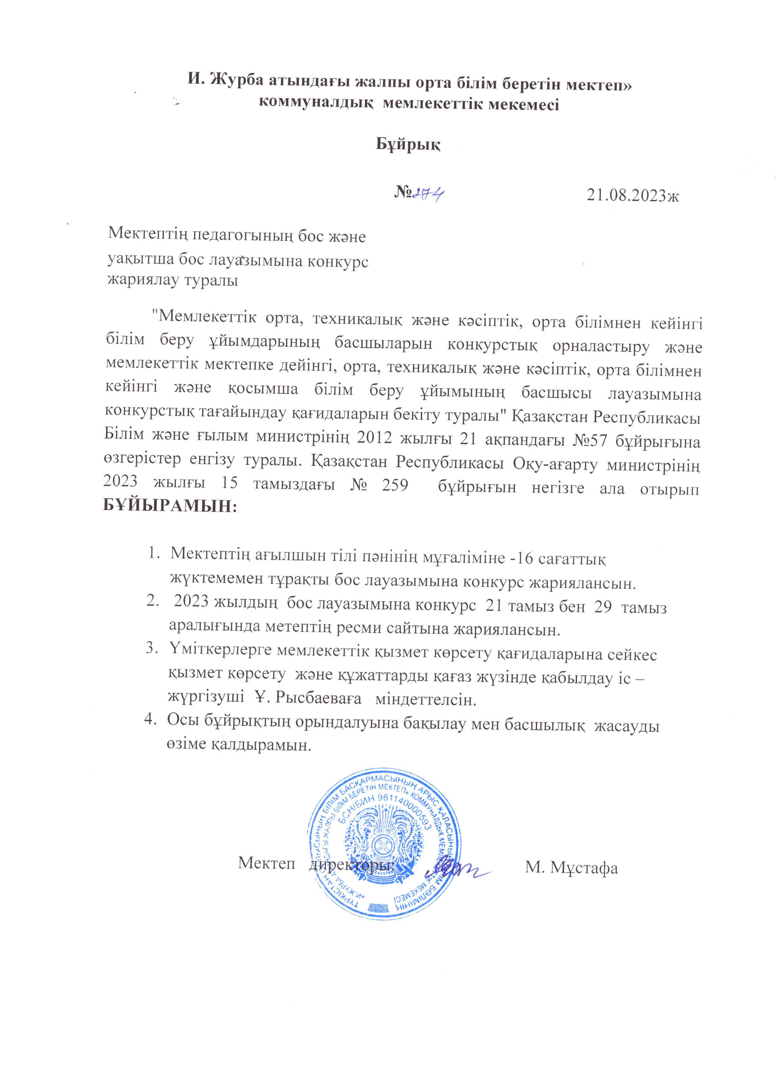 Бірінші сынып оқуға қабылдау 2024